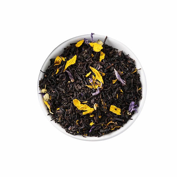 Samenstelling: zwarte thee, zonnebloembloesems, kaasjeskruidbloesems en aroma.